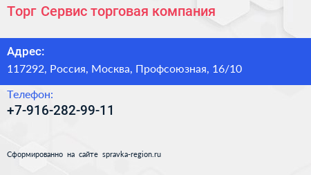 Торг Сервис, торговая компания по адресу 117292, Россия, Москва, Профсоюзная, 16/10 в дальнейшем Организация, размещена в следующих категориях:
