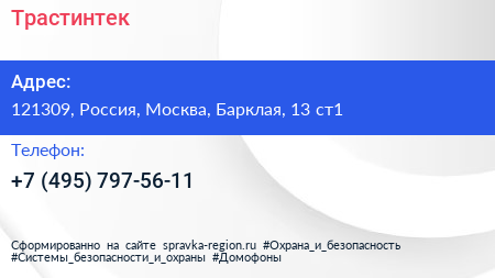 Трастинтек по адресу 121309, Россия, Москва, Барклая, 13 ст1 в дальнейшем Организация, размещена в следующих категориях: