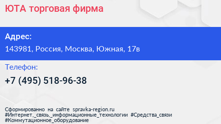 ЮТА, торговая фирма по адресу 143981, Россия, Москва, Южная, 17в в дальнейшем Организация, размещена в следующих категориях: