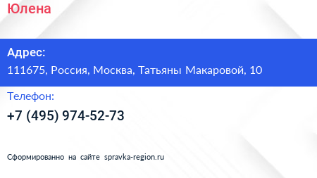 Юлена по адресу 111675, Россия, Москва, Татьяны Макаровой, 10 в дальнейшем Организация, размещена в следующих категориях: