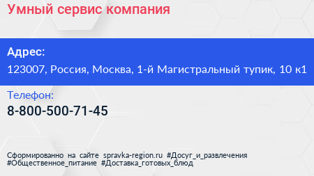 Умный сервис, компания по адресу 123007, Россия, Москва, 1-й Магистральный тупик, 10 к1 в дальнейшем Организация, размещена в следующих категориях: