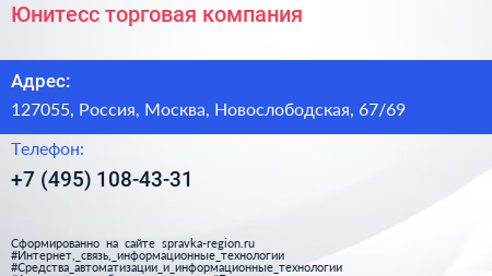 Юнитесс, торговая компания по адресу 127055, Россия, Москва, Новослободская, 67/69 в дальнейшем Организация, размещена в следующих категориях: