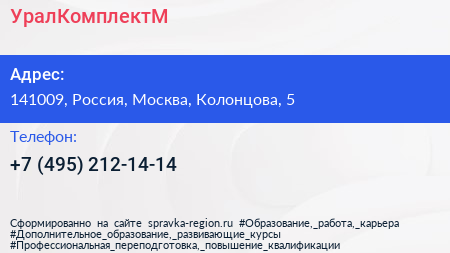 УралКомплектМ по адресу 141009, Россия, Москва, Колонцова, 5 в дальнейшем Организация, размещена в следующих категориях: