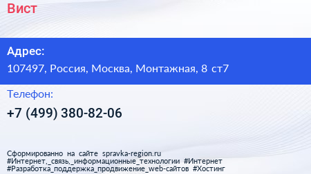 Вист по адресу 107497, Россия, Москва, Монтажная, 8 ст7 в дальнейшем Организация, размещена в следующих категориях: