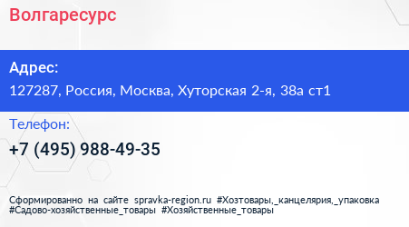 Волгаресурс по адресу 127287, Россия, Москва, Хуторская 2-я, 38а ст1 в дальнейшем Организация, размещена в следующих категориях: