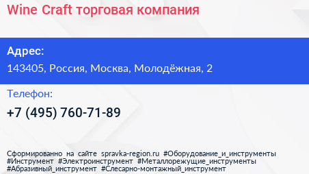 Wine Craft, торговая компания по адресу 143405, Россия, Москва, Молодёжная, 2 в дальнейшем Организация, размещена в следующих категориях:
