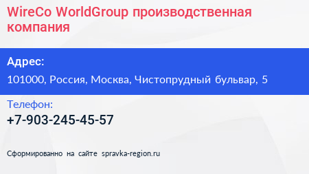 WireCo WorldGroup, производственная компания по адресу 101000, Россия, Москва, Чистопрудный бульвар, 5 в дальнейшем Организация, размещена в следующих категориях: