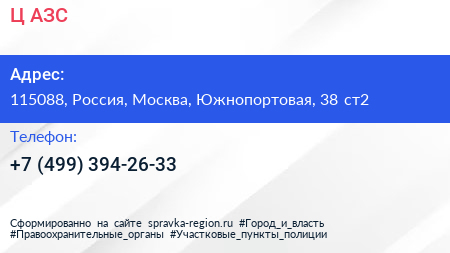 Ц-АЗС по адресу 115088, Россия, Москва, Южнопортовая, 38 ст2 в дальнейшем Организация, размещена в следующих категориях: