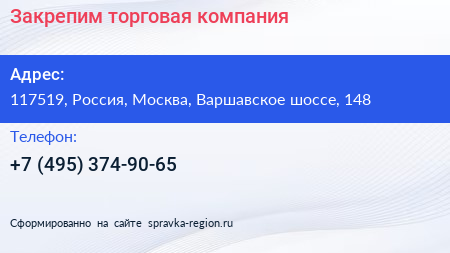 Закрепим, торговая компания по адресу 117519, Россия, Москва, Варшавское шоссе, 148 в дальнейшем Организация, размещена в следующих категориях: