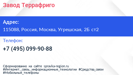 Завод Террафриго по адресу 115088, Россия, Москва, Угрешская, 2Б ст2 в дальнейшем Организация, размещена в следующих категориях: