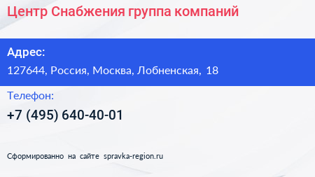 Центр Снабжения, группа компаний по адресу 127644, Россия, Москва, Лобненская, 18 в дальнейшем Организация, размещена в следующих категориях: