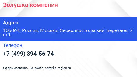 Для связи с организацией воспользуйтесь номером телефона: +7 (499) 394-56-74. Пн: c 09:00-18:00, Вт: c 09:00-18:00, Ср: c 09:00-18:00, Чт: c 09:00-18:00, Пт: c 09:00-18:00, Сб: выходной, Вс: выходной, вы можете обратиться в эту организацию.