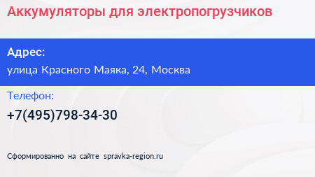 Аккумуляторы для электропогрузчиков по адресу улица Красного Маяка, 24, Москва в дальнейшем Организация, размещена в следующих категориях: