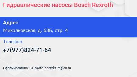 Гидравлические насосы Bosch Rexroth по адресу Михалковская, д. 63Б, стр. 4 в дальнейшем Организация, размещена в следующих категориях: