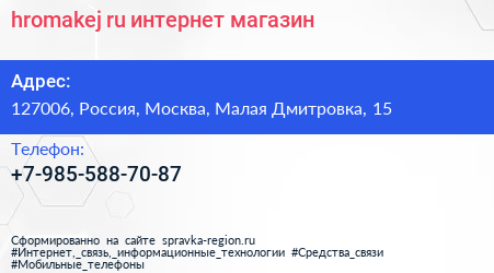 hromakej.ru, интернет-магазин по адресу 127006, Россия, Москва, Малая Дмитровка, 15 в дальнейшем Организация, размещена в следующих категориях: