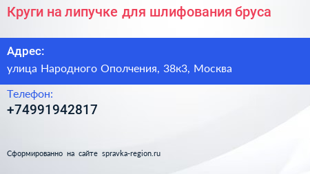 Круги на липучке для шлифования бруса по адресу улица Народного Ополчения, 38к3, Москва в дальнейшем Организация, размещена в следующих категориях: