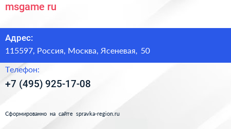 msgame.ru по адресу 115597, Россия, Москва, Ясеневая, 50 в дальнейшем Организация, размещена в следующих категориях: