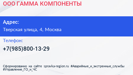 ООО «ГАММА-КОМПОНЕНТЫ» по адресу Тверская улица, 4, Москва в дальнейшем Организация, размещена в следующих категориях:
