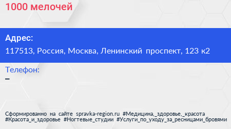 1000 мелочей по адресу 117513, Россия, Москва, Ленинский проспект, 123 к2 в дальнейшем Организация, размещена в следующих категориях: