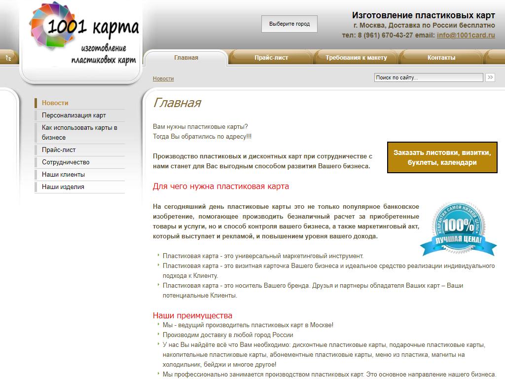 1001 Карта, компания по изготовлению пластиковых карт по адресу 127006, Россия, Москва, Настасьинский переулок, 8 ст2 в дальнейшем Организация, размещена в следующих категориях: