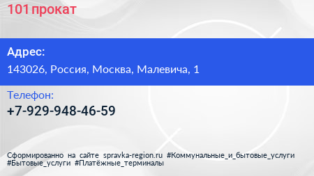 101 прокат по адресу 143026, Россия, Москва, Малевича, 1 в дальнейшем Организация, размещена в следующих категориях:
