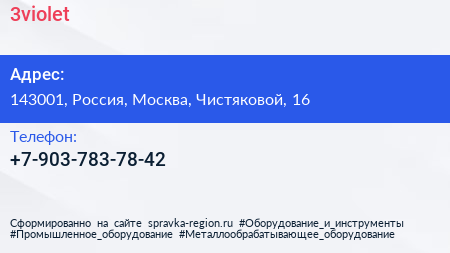 3violet по адресу 143001, Россия, Москва, Чистяковой, 16 в дальнейшем Организация, размещена в следующих категориях: