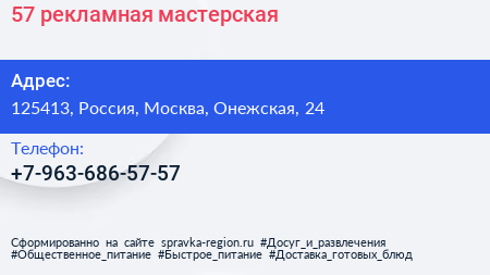 57, рекламная мастерская по адресу 125413, Россия, Москва, Онежская, 24 в дальнейшем Организация, размещена в следующих категориях: