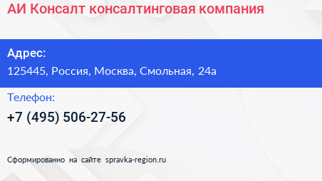 АИ-Консалт, консалтинговая компания по адресу 125445, Россия, Москва, Смольная, 24а в дальнейшем Организация, размещена в следующих категориях: