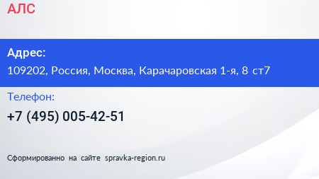 АЛС по адресу 109202, Россия, Москва, Карачаровская 1-я, 8 ст7 в дальнейшем Организация, размещена в следующих категориях:
