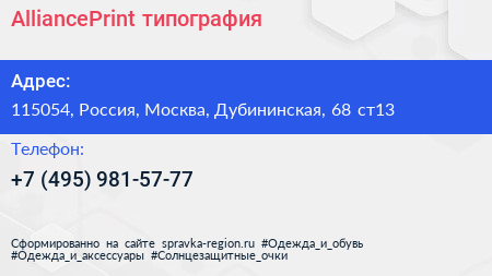 AlliancePrint, типография по адресу 115054, Россия, Москва, Дубининская, 68 ст13 в дальнейшем Организация, размещена в следующих категориях: