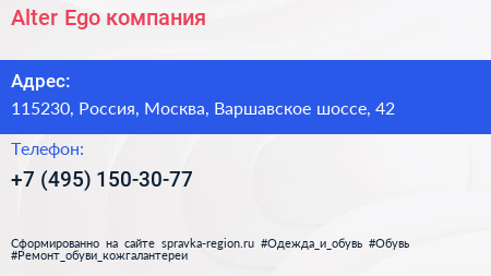 Alter Ego, компания по адресу 115230, Россия, Москва, Варшавское шоссе, 42 в дальнейшем Организация, размещена в следующих категориях: