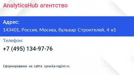 AnalyticsHub, агентство по адресу 143401, Россия, Москва, бульвар Строителей, 4 к1 в дальнейшем Организация, размещена в следующих категориях: