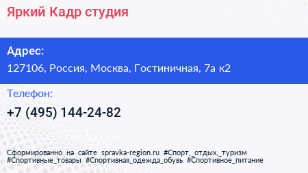 Яркий Кадр, студия по адресу 127106, Россия, Москва, Гостиничная, 7а к2 в дальнейшем Организация, размещена в следующих категориях: