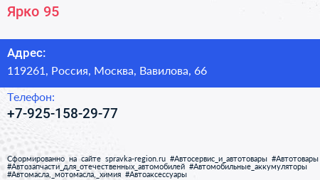 Ярко 95 по адресу 119261, Россия, Москва, Вавилова, 66 в дальнейшем Организация, размещена в следующих категориях: