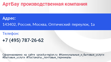АртБау, производственная компания по адресу 143402, Россия, Москва, Оптический переулок, 1а в дальнейшем Организация, размещена в следующих категориях: