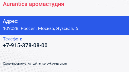 Aurantica, аромастудия по адресу 109028, Россия, Москва, Яузская, 5 в дальнейшем Организация, размещена в следующих категориях: