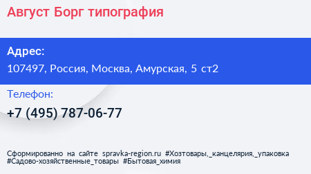 Август Борг, типография по адресу 107497, Россия, Москва, Амурская, 5 ст2 в дальнейшем Организация, размещена в следующих категориях: