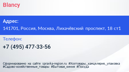 Blancy по адресу 141701, Россия, Москва, Лихачёвский проспект, 18 ст1 в дальнейшем Организация, размещена в следующих категориях: