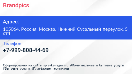 Brandpics по адресу 105064, Россия, Москва, Нижний Сусальный переулок, 5 ст4 в дальнейшем Организация, размещена в следующих категориях: