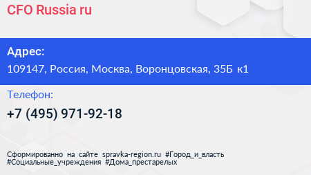 CFO-Russia.ru по адресу 109147, Россия, Москва, Воронцовская, 35Б к1 в дальнейшем Организация, размещена в следующих категориях: