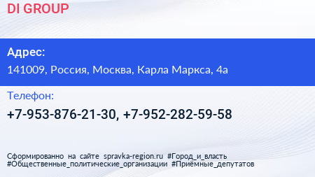 DI GROUP по адресу 141009, Россия, Москва, Карла Маркса, 4а в дальнейшем Организация, размещена в следующих категориях: