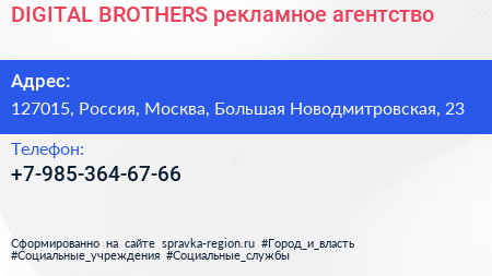 DIGITAL BROTHERS, рекламное агентство по адресу 127015, Россия, Москва, Большая Новодмитровская, 23 в дальнейшем Организация, размещена в следующих категориях: