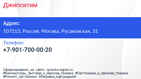 Джипситим по адресу 107113, Россия, Москва, Русаковская, 31 в дальнейшем Организация, размещена в следующих категориях: