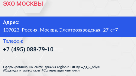ЭХО МОСКВЫ по адресу 107023, Россия, Москва, Электрозаводская, 27 ст7 в дальнейшем Организация, размещена в следующих категориях: