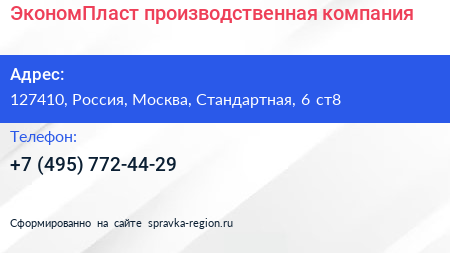 ЭкономПласт, производственная компания по адресу 127410, Россия, Москва, Стандартная, 6 ст8 в дальнейшем Организация, размещена в следующих категориях: