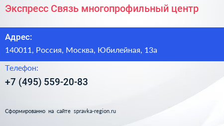 Экспресс-Связь, многопрофильный центр по адресу 140011, Россия, Москва, Юбилейная, 13а в дальнейшем Организация, размещена в следующих категориях:
