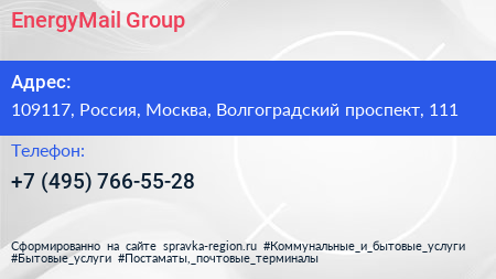 EnergyMail Group по адресу 109117, Россия, Москва, Волгоградский проспект, 111 в дальнейшем Организация, размещена в следующих категориях: