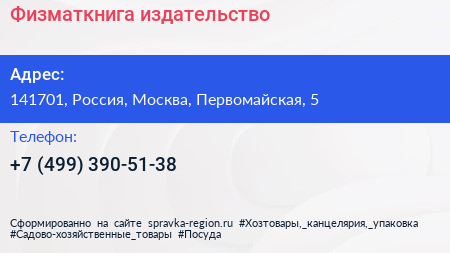 Физматкнига, издательство по адресу 141701, Россия, Москва, Первомайская, 5 в дальнейшем Организация, размещена в следующих категориях: