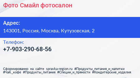 Фото-Смайл, фотосалон по адресу 143001, Россия, Москва, Кутузовская, 2 в дальнейшем Организация, размещена в следующих категориях: