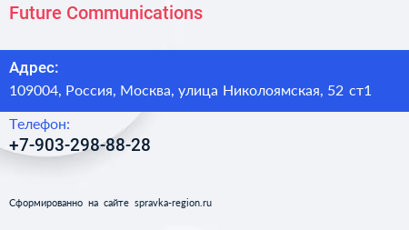 Future Communications по адресу 109004, Россия, Москва, улица Николоямская, 52 ст1 в дальнейшем Организация, размещена в следующих категориях: